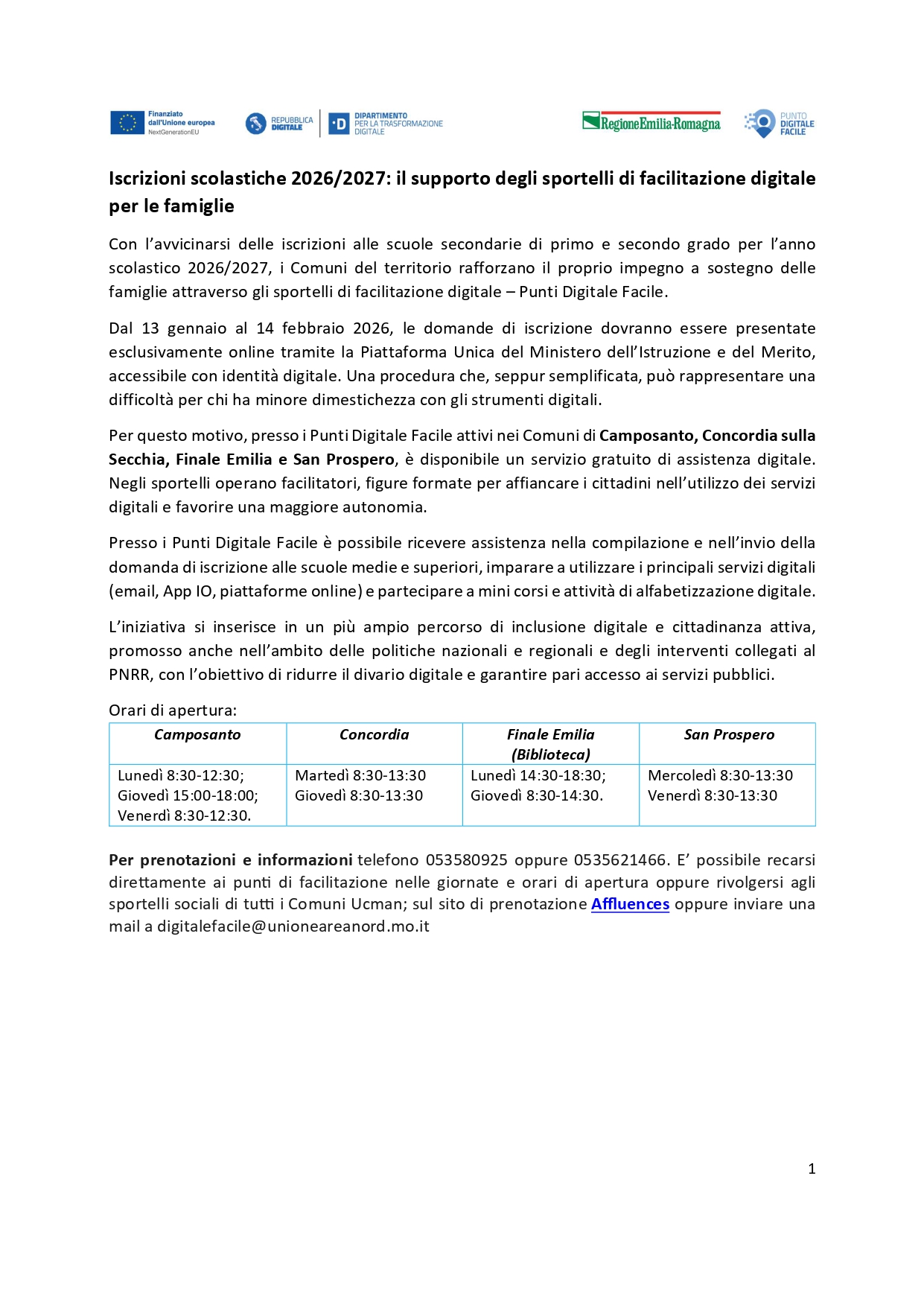 Per prenotazioni e informazioni telefono 053580925 oppure 0535621466. E’ possibile recarsi direttamente ai punti di facilitazione nelle giornate e orari di apertura oppure rivolgersi agli sportelli sociali di tutti i Comuni Ucman; sul sito di prenotazione Affluences oppure inviare una mail a digitalefacile@unioneareanord.mo.it