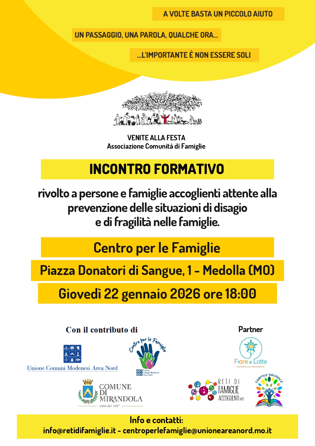 Per informazioni: info@retidifamiglie.it centroperlefamiglie@unioneareanord.mo.it