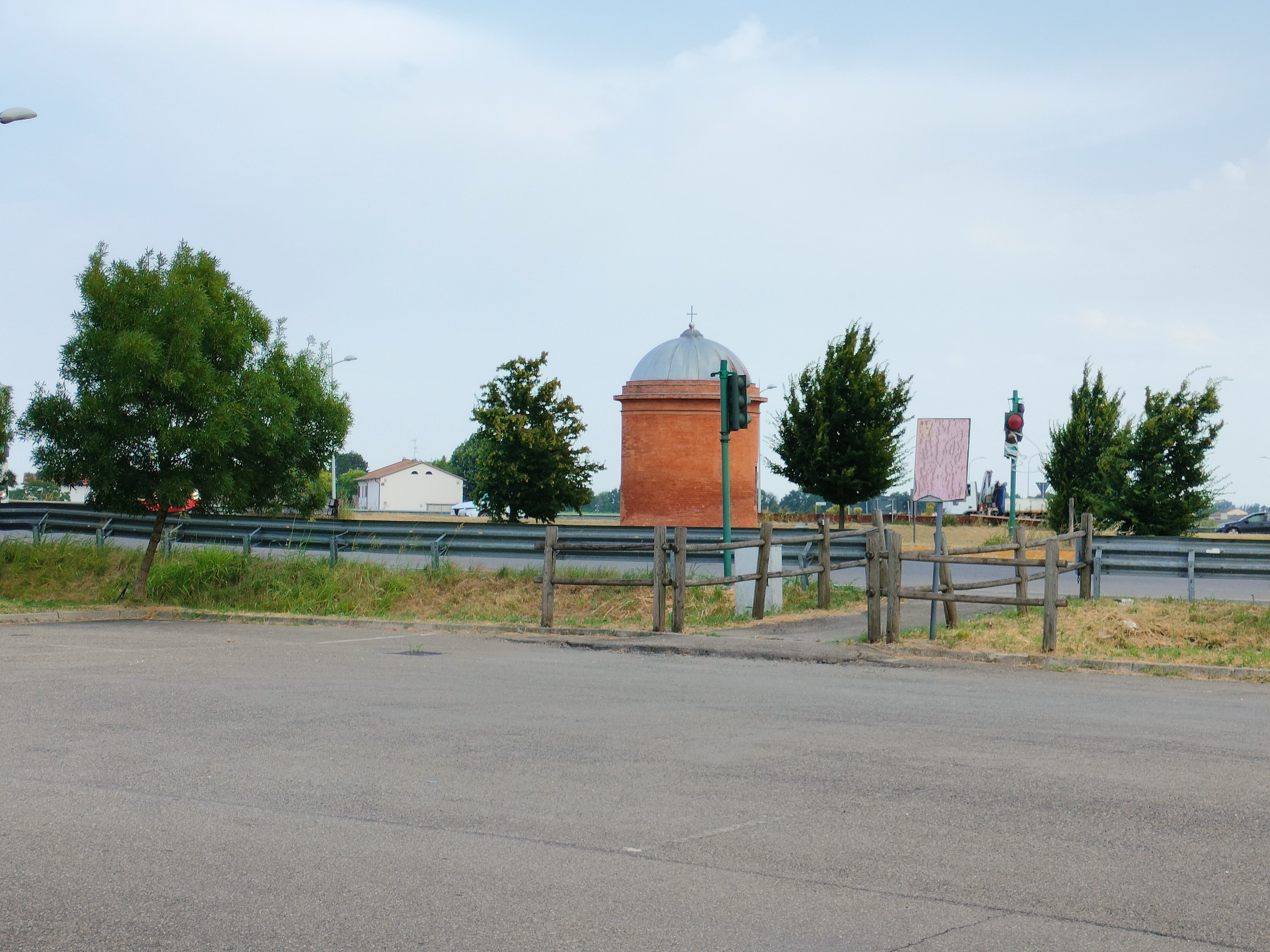 The Duke's Chapel is a votive oratory located inside the roundabout of the same name, situated between State Road 12 of Abetone and Brennero and Provincial Road 5 Cavezzo-Camposanto, on the border between the municipalities of Medolla and San Prospero, in the province of Modena and in the territory of the former. The chapel was commissioned as a votive offering by Francesco V, the last Duke of Modena, following the assassination attempt he survived in 1848. On November 16, 1848, Duke Francesco V was traveling from the Royal Villa of San Felice sul Panaro and, when he reached the Tre Torri tavern in Villafranca di Medolla, he decided to stretch his legs, which had become numb from the cold. The young Luigi Rizzati, a Mazzinian student at the Faculty of Pharmacy of the University of Modena who was nearby, saw the duke walking near his carriage and suddenly decided to shoot him with a rifle, but the shot missed. The attacker was later arrested by Major Giovan Battista Guerra and the Duke's armed escort, who subsequently sentenced the attacker to only ten years in prison, considering him mentally unstable. To thank Divine Providence for his narrow escape, Duke Francesco V decided to have a votive chapel built, the construction of which took several years, so much so that in 1859 it was still unfinished and had not yet been consecrated. To thank Divine Providence for his narrow escape, Duke Francesco V decided to have a votive chapel built, the construction of which took several years, so much so that in 1859 it was still unfinished and had not yet been consecrated. The intersection where the Duke's chapel stands has been the site of countless fatal road accidents in the past, due to the long straight road coming from Camposanto and the fact that it is the busiest intersection in the lower Modena area, with 13,833 vehicles per day in 2006. After installing traffic lights in September 2002, in 2008 the provincial administration of Modena finally decided to build a roundabout, which was inaugurated on April 8, 2009.